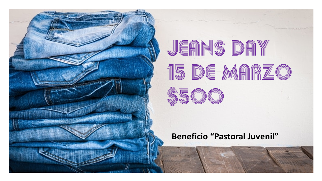 Estimada Comunidad, este viernes 15 de marzo se realizará tanto en básica como en media Jeans Day a beneficio de la "Pastoral Juvenil" del colegio....
